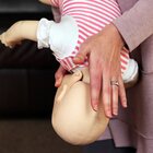 4. Jeśli nie udało Ci się wyjąć zalegającego przedmiotu, a oddech nie powrócił rozpocznij sztuczne oddychanie. Nabierz powietrza, obejmij szczelnie ustami usta i nos niemowlaka i wdmuchnij powietrze. Powtórz wdmuchiwanie 5 razy. Jeśli brak oddechu, zacznij masaż serca: 30 uciśnięć dwoma placami klatki piersiowej (w dolnej części mostka) i następnie 2 wydechy. Po 3 sekwencjach sprawdź czy maluch zaczął oddychać. Jeśli nie, zadzwoń szybko po pogotowie i kontynuuj masaż serca. Powtarzaj sekwencję aż do czasu przyjazdu karetki pogotowia.