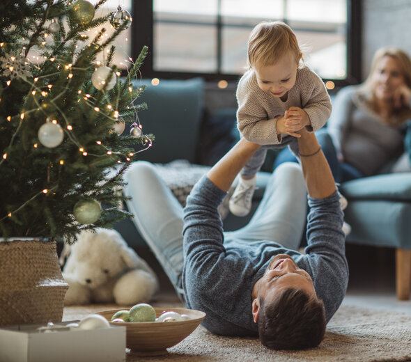 My last proposal is a music and movement activity. It is more fun when you do it together with other mums and kids, but you can also do it individually. Inflate a lot of white balloons (at least as many as there are children), creating the winter atmosphere. Put them on a large blanket. Hold the little babies into your arms and invite the older ones who can stand stably to hold the blanket. Grip the rim of the blanket as well and play with the kids tossing the balloons: slowly and quietly (swinging) and then fast and energetic until all of them fall to the floor. Put the balloons back on the blanket and repeat the game changing the movement intensity. You can play music of varied pace. At the end of the activity you can arrange balloon dance in pairs. It can be any dance you like and suitable for the baby (standing alone or in his mum's arms). Use the balloons for dancing, following the way your child is playing. Have a hot winter and great fun at your home!