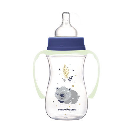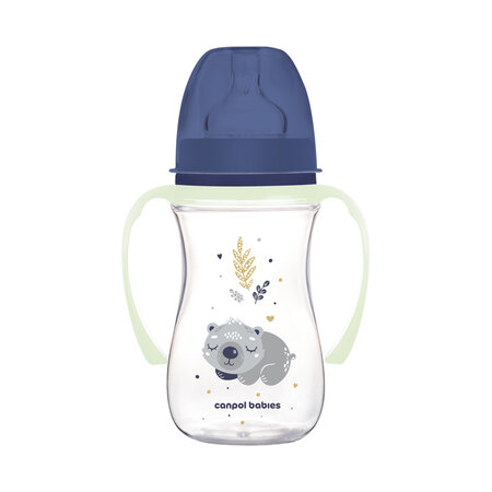 Symbol: 35/237_bluCanpol babies Antikoliková lahev EasyStart se svítícími úchyty Sleepy Koala 240ml modrá