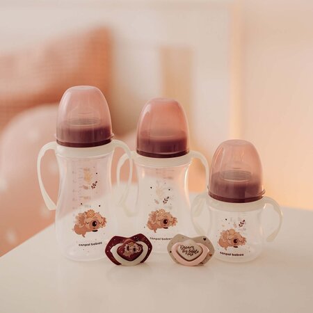 Širokohrdlá antikoliková lahev Canpol babies se svítícími rukojeťmi PP EasyStart 300ml Sleepy Koala je vyrobena z bezpečného a moderního materiálu. Je lehký, odolný a zcela průhledný. Jasná a přesná stupnice vám umožní kontrolovat množství, které vaše dítě vypije, a díky širokému otvoru se lahev snadno čistí a plní.
