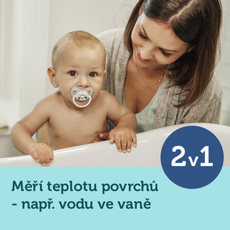 Symbol: 5/300Bezkontaktní infračervený teploměr EasyStart od Canpol babies zaručuje rychlé a přesné měření teploty, kdykoli to potřebujete. K dosažení přesných výsledků stačí jedna sekunda. Zařízení současně interpretuje měření teploty a signalizuje jej barvou. Ideální pro nejmenší děti. Umožňuje diskrétní měření během spánku a čitelný podsvícený displej usnadní používání teploměru i v noci. Díky vestavěné paměti můžete snadno vidět výsledky posledních 25 měření. Teploměr lze použít k měření teploty těla a předmětů, tekutin, pokrmů a prostředí. V případě potřeby tedy můžete snadno kontrolovat teplotu dětského jídla nebo vody ve vaně. Pohodlný, praktický tvar a intuitivní ovládání zaručují pohodlí při používání. Je nezbytným produktem v každé domácí lékárničce a také ve výbavičce pro miminko.