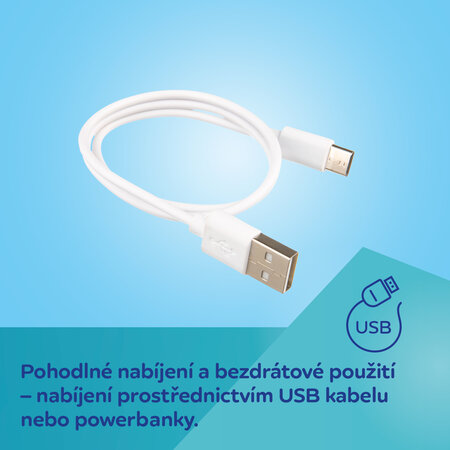 Pohodlné nabíjení a bezdrátové použití – nabíjení přes USB kabel nebo powerbanku.