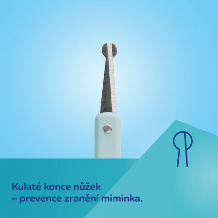 Sada obsahuje nůžky, praktické kleštičky na nehty, jemný pilník a pinzetu. Dostupné ve dvou barevných provedeních. Aby se minimalizovalo riziko neočekávaného pohybu dítěte, doporučuje se ostříhat nehty, když dítě spí. Sada není vhodná do myčky nádobí. Nevyvařujte, pro dezinfekci použijte vhodný dezinfekční prostředek a opláchněte vodou.