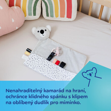 Nenahraditelný první kamarád každodenních her, strážce klidného spánku s možností připevnění oblíbeného dudlíku vašeho miminka.