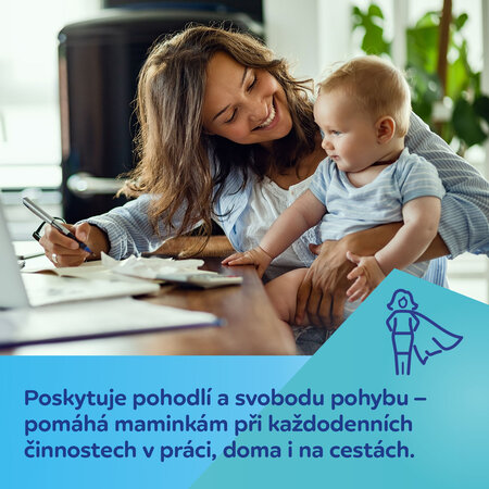 Spojuje pohodlí s flexibilitou – pomáhá mamince při každodeních činnostech doma, v práci nebo na cestách.