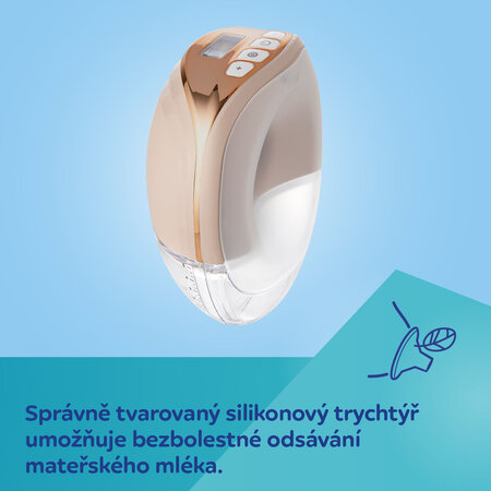Elektrická odsávačka mateřského mléka Hands-free je diskrétní a tichá – max. 50 decibelů* v nejintenzivnějším režimu, který vám umožní odsát mléko, ať jste kdekoli, dokonce i v noci.