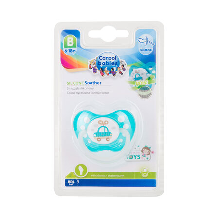 Canpol babies Dudlík ortodontický silikonový 6–18 m TOYS tyrkysový