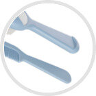Tvar rukojeti kartáče a hřebenu usnadňuje pohodlnou manipulaci a zabraňuje vyklouznutí v průběhu česání. Syntetické štětiny jsou bezpečné pro hlavičku děťátka. Praktické skladování hřebene díky možnosti vložení do kartáče. Sada je k dispozici ve třech pastelových barvách.