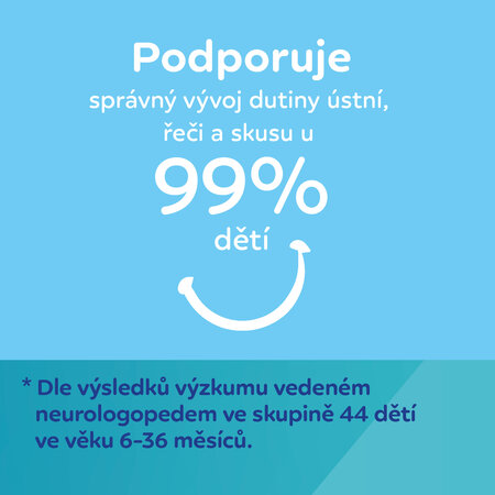 Podporuje správný vývoj dutiny ústní, řeči a skusu u 99 % dětí*.