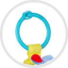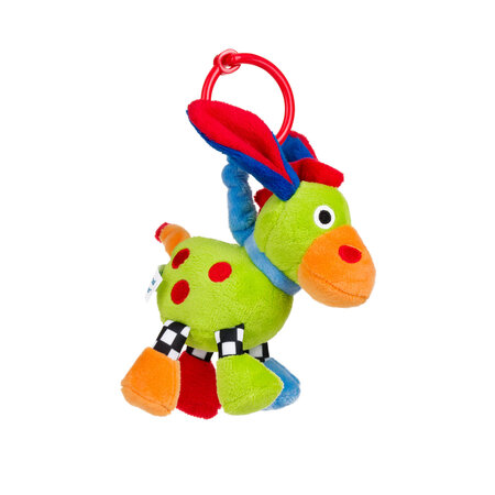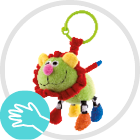 Je vybavena pohodlným úchytem, který umožňuje připevnit hračku na kočárek, autosedačku nebo postýlku.