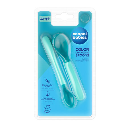 Canpol babies Sada plastových lžiček TERMO 2ks tyrkysové