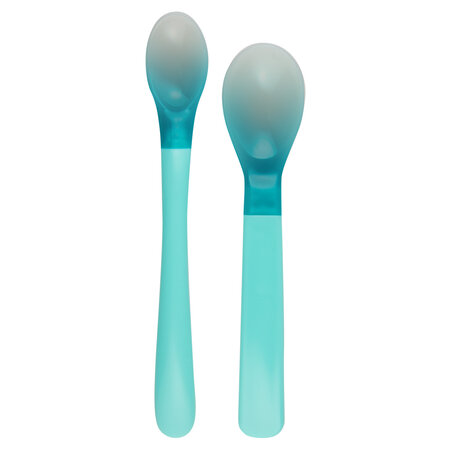 Lžičky mění barvu pod vlivem vysoké teploty (nad 40°C) na světlejší, což usnadňuje krmení dítěte jídlem správné teploty.