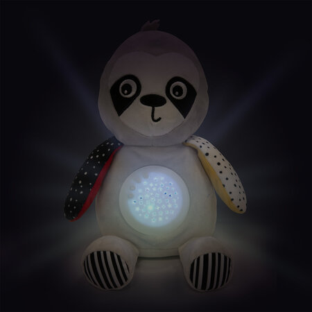 Symbol: 68/100Senzorická hračka s melodiemi a projektorem BabiesBoo 3v1 je skvělým společníkem při každodenním usínání a hraní každého miminka. Měkká senzorická hračka v kontrastních barvách, které novorozenci vidí jako první, podporuje správný vývoj dětského zrakového vnímání. Projektor s melodiemi je schovaný v bříšku hračky, obsahuje melodie, které uklidňují a tiší miminko, čímž usnadňují usínání. Hračku je snadné udržovat v čistotě – po vyjmutí projektoru lze plyšovou hračku mýt v ruce. Hračka má 3 provozní režimy: může zobrazovat světelnou projekci (hvězdy) a přehrávat melodie, přehrávat pouze melodie nebo promítat jen tlumené světlo, čímž funguje jako noční světýlko. K dispozici je 12 uklidňujících melodií, včetně jemných přírodních zvuků, zpěvů ptáků a tlukotu srdce. Hlasitost lze nastavit podle preferencí miminka na 5 úrovních. Po 30 minutách se hračka automaticky vypne. Ideální dárek od narození, doporučeno fyzioterapeutkou Magdalenou Zujewicz.