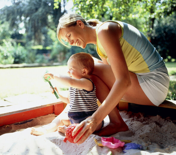 Jeżeli korzystamy z osiedlowej piaskownicy, od razu po zabawie umyjmy dziecku rączki, może być mokrymi chusteczkami. Nie pozwólmy by podczas zabawy dziecko wkładało ręce do buzi ani nie jadło piasku.