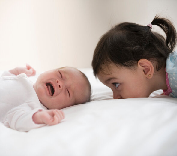 Gdy byłam w szpitalu małą zajmował się mąż i jej ulubiona ciocia. Gdy wracałam z drugą córką miałam przygotowane dla niej 2 prezenty jeden ode mnie drugi od młodszej siostry (dużo lepszy), mała była przeszczęśliwa. Przyjęła siostrzyczkę bez najmniejszego problemu. Na początku była jedynie zazdrosna o cycusia. Dałam więc jej go spróbować, na szczęście nie wiedziała już jak się ciągnie i nic nie poleciało. Wytłumaczyłam więc że to tylko dla dzidziusiów i duże dziewczynki tego nie jedzą.