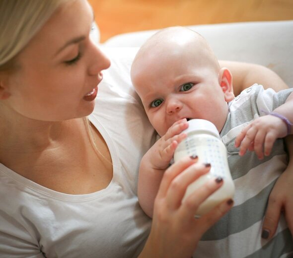 Kiedy maluszek przechodzi z karmienia piersią, na karmienie butelką, zdarza się że dziecko się buntuje przed taką zmianą. Przyzwyczajone do mamusiowej piersi, stawia opór. Bardzo dobrym sposobem jest, aby w pierwszym tygodniu, nawet dwóch malucha karmił tata. Dziecku wtedy karmienie nie będzie kojarzyło się z mamą.