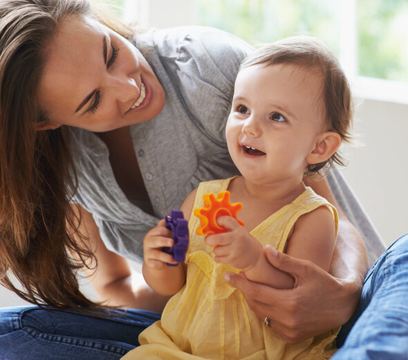 Jedną z najprostszych zabaw jest wieża - budujemy ją w powietrzu z czterech rąk, wyjmujemy dolne "cegły" i układamy je na górze. Najpierw wolno, a potem coraz szybciej.