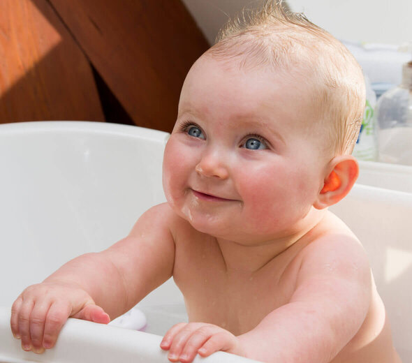 Do każdej kąpieli gotuje małemu krochmal. Pomaga nie tylko na podrażnienie, ale jest zbawienny również na potówki, wypryski i suchą skórę. Przepis bardzo prosty – wystarczy zagotować 2 szklanki wody i dodać do niej 2 łyżki mąki ziemniaczanej, rozmieszanej w pół szklanki zimnej wody. Nie od razu wyjdzie, może i z raz będą kluchy, ale w końcu dochodzi się do wprawy. A skóra dziecka będzie śliczna. Do wody można dodać również otręby owsiane, które świetnie ją zmiękczą. Można też dolać mleko 3,2%, wystarczy pół szklanki. Skóra dzidziusia będzie dodatkowo nawilżona. Mój Syn dzięki niemu już po kąpieli miał ją o wiele gładszą.