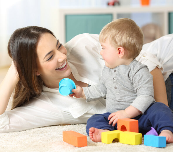 Dzieci w tym okresie zwracają uwagę na małe przedmioty i potrafią je już układać. Daj dziecku miseczkę lub wiadereczko oraz kilka małych przedmiotów. Pokaż maluszkowi, że może wrzucać przedmioty do środka. Możesz przy tym ułożyć wierszyk lub śpiewać piosenkę. Dziecko szybko się nauczy i będzie chciało Cię naśladować, wrzucając przedmioty do środka.