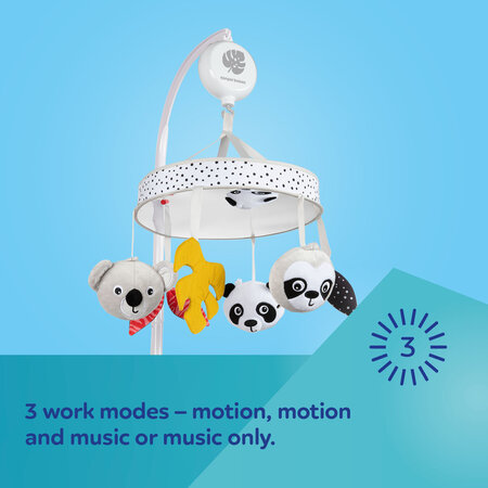 Symbol: 68/093Unique and modern sensory mobile for the baby cot will interest the baby during the day and create a cozy and peaceful atmosphere for sleeping. The mobile plays 11 melodies for 60 minutes: white noise, sounds of sea waves and flying seagulls, rain, forest noise and birds singing, 6 lullabies and classical music by Mozart. Device with a Bluetooth function allows you to turn on your favorite melodies and fairy tales from the application on your mobile phone. The carousel has 3 operation modes: movement, movement and music or only music and the wide range of volume adjustment – you can easily adjust it to your baby's preferences. Canpol babies sensory mobile has a specially profiled headband, thanks to which it can be easily and stably attached to the frame of a baby cot. There are 6 different toys on the carousel, of which 3 cute animals look at the baby's baby. Contrasting colors – white and black, combined with yellow and red color attract the child's attention and stimulate the imagination. On the entire surface of the lower diameter there is a mirror in which the child sees its face, arousing his curiosity and interest. The pendants mounted on the mobile and a large mirror encourage the child to stretch out his hands towards them, which supports the development of its muscles and engages the sense of sight and trains eye-hand coordination. Canpol babies sensory mobile with music box and Bluetooth BabiesBoo is a perfect gift idea for a newborn or for a Baby Shower.