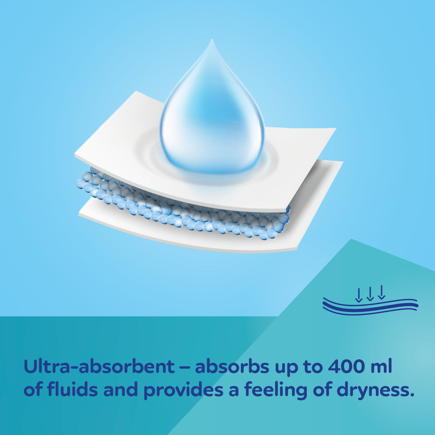 Ultra-absorbent – absorbs up to 400 ml of fluids and provides a feeling of dryness.