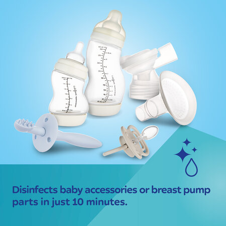 Disinfects baby accessories or breast pump parts in just 10 minutes.