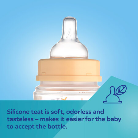 Silicone teat is soft, odorless and tasteless – it makes the acceptance of the bottle easier.