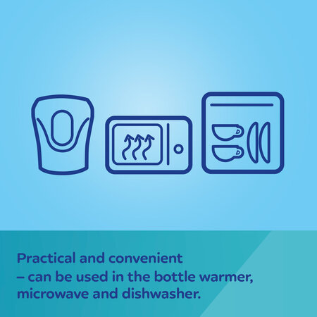 Practical and convenient – can be used in a bottle warmer, microwave and dishwasher.