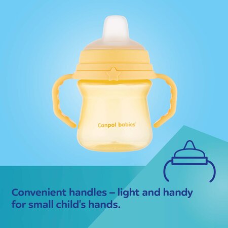 The cup is designed for children aged 6m+. The cup fits Canpol babies 56/616 silicone spout. It can be washed in the dishwasher (max. 60°C) and heated in the microwave (without lid and handles). Can be filled with boiling water.