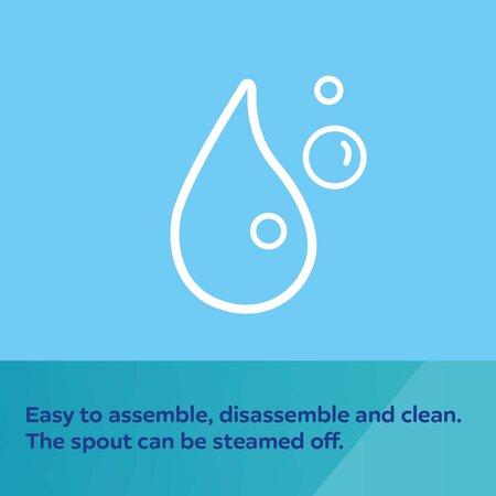 Keep the cup clean. Before first use, disassemble and clean the product and then place the components in boiling water for 5 min. This is to ensure hygiene. Before each subsequent use clean carefully to ensure hygiene. Before first and each use wash all removable parts in warm water with mild detergent, then rinse well. Pour with boiling water. Avoid using sharp or abrasive materials when cleaning. Wash all parts thoroughly with clean water, including areas that may be invisible but where food has passed, to remove any food residues. Never enlarge the spout holes by any means, as it can damage the spout. Thick liquids (ex. suspensions containing small fruit particles) might clog the spout. Check the product before each use. Product can be washed in the dishwasher (max. 60°C). It is not recommended to place the spout in a dishwasher. Hard chemicals/detergents may damage the product. Cup can be used in microwave ovens without screw cap and handle. When heating drinks in a microwave oven, make sure the cup is opened. Take extra care when microwave heating; localized over heating can occur. Always mix the heated food and check the temperature before feeding . This product is not suitable for use with hot or fizzy drinks. The liquid may spill out when overpressure will arise. Do not place product in hot oven or heat in a gas/electric cooker. Do not leave the product in direct sunlight or in a hot place, as this may weaken the product. Warning! This product is not a toy. Retain the instruction for later use. Make sure that the silicon gasket is installed correctly.
