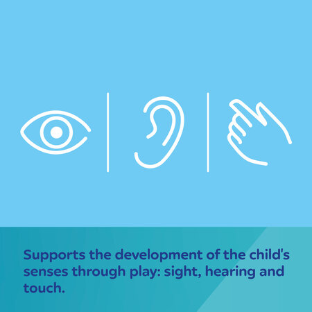 It supports the development of the child's senses through play: sight, hearing and touch.