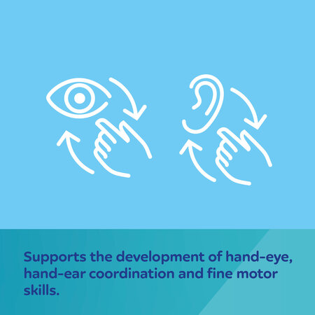 Supports the development of hand-eye, hand-ear coordination and fine motor skills.