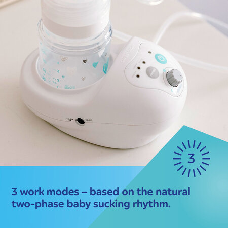 3 operation modes – based on the natural two-phase baby sucking rhythm.
