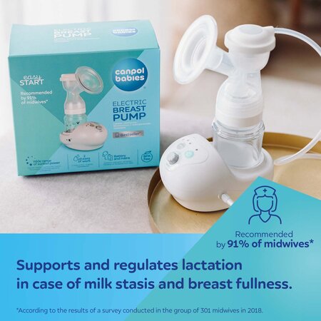 Symbol: 12/215EasyStart electric breast pump effectively supports and regulates lactation in case of milk stasis and breast fullness. It is economical, perfect at the beginning of lactation and expressing excess milk, also for moms who express milk occasionally. EasyStart breast pump is recommended by 91% of midwives.*
