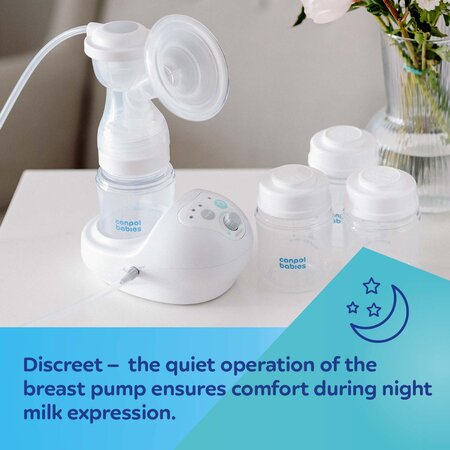- Discreet – quiet operation of the breast pump ensures comfort during night milk expression.