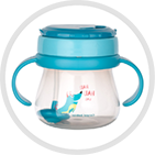 Symbol: 56/517An Innovative Cup with Flip Top Straw ended with a weight. It allows you to drink from a cup from any angle. The moveable part of the cap allows an easy and convenient way to hide the straw, preventing uncontrolled pouring the drink. It is equipped with comfortable, wide handles that make it easy to hold the cup in small hands. For travel or for a walk. It is designed for children ages 9m +. Capacity 250ml.