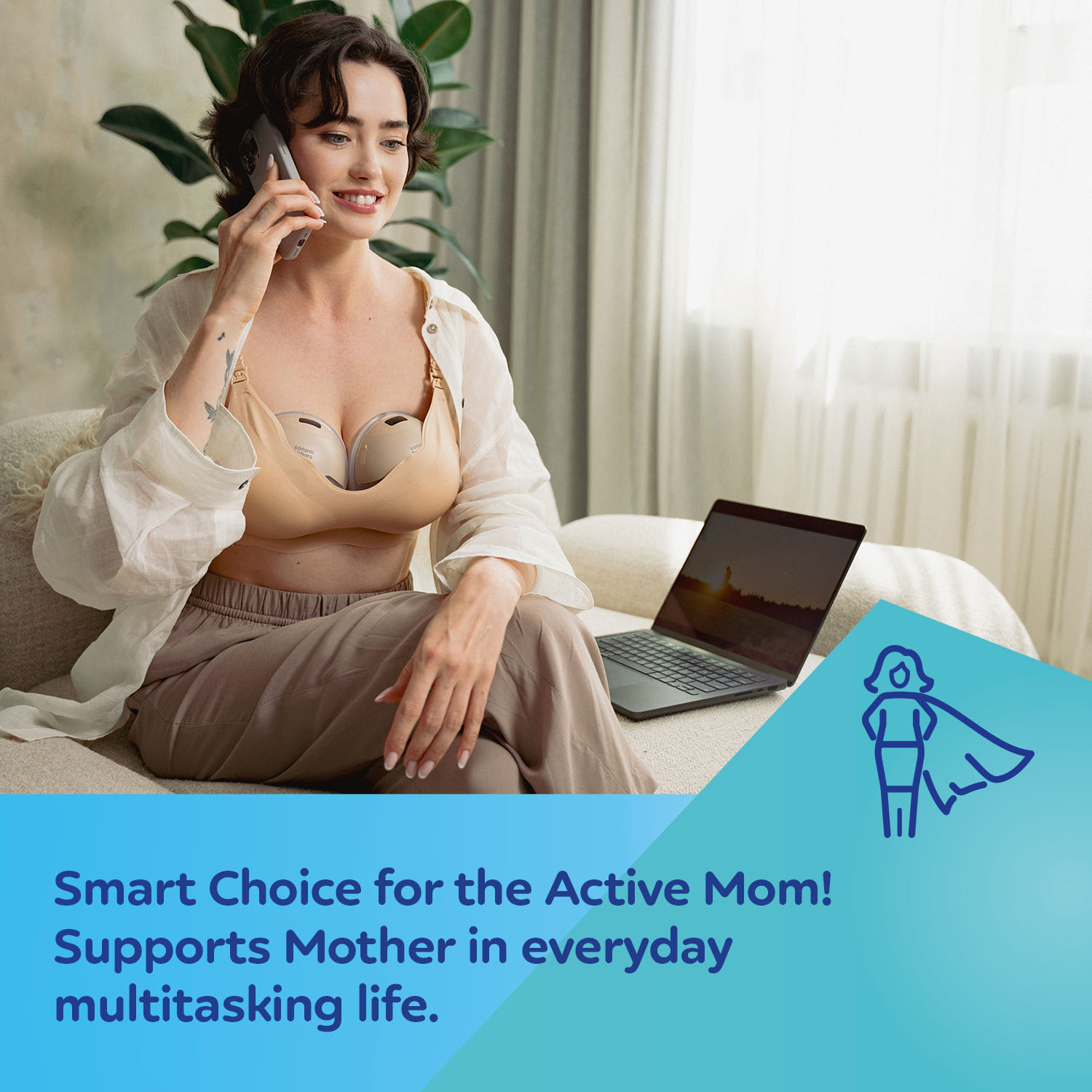 The SmartSense shell breast pump was created to support moms in their multitasking daily life. It’s an excellent solution for fans of the hands-free idea – perfect for wearing inside a bra and for an active lifestyle. Thanks to SkinFIT technology, it guarantees maximum pumping efficiency without leakage. SkinFIT technology is based on the close adherence of a flexible silicone shield to the breast, which provides a natural skin-to-skin feeling, increasing comfort and minimizing the risk of leakage.