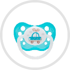 Store the Soother in a dry Soother Container. Soother with matt or cracked tip has to be replaced with a new one before the baby bites it off with the risk of choking. Before each use, carefully inspect the product. Pull the soother in all directions. In case of any damage, discard the product. If the child already has teeth and still uses a soother, regularly check if the tip is not nibbled. To ensure the comfort and safety of the baby, replace the pacifier every 1-2 months. In the unlikely event that the child places the whole soother in its mouth DO NOT panic. The Soother is designed so that it can not be swallowed by a baby. As soon as you notice that your toddler has put the pacifier in its mouth, remove it as gently as possible.