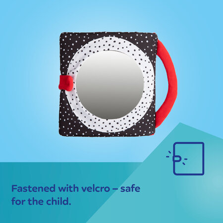 Symbol: 68/088It fits perfectly to small child's hands, supporting learning of grasping.Canpol babies sensory book is the perfect first reading for a baby. It stimulates child's imagination, creativity and curiosity, supports child's natural development by activating the sense of sight, touch and hearing, and supports the training of manual skills and hand-eye coordination. It is also a great way to instill a love of books in your little one. The book presents the story of one day in the life of the panda, which is attached on the ribbon in the form of a mascot. The heroine can be "revived" by moving her between pages, where we show her in various situations during the day – when she eats breakfast, takes a bath, meets friends or sleeps in a crib. The colorful pictures are great for storytelling and encourage the baby to name everyday activities when it starts to talk. Sensory book has many elements that attract the child's attention, creates unlimited play and supports the parent in playing with the child, thanks to nice faces in the form of a mask. The book is fastened with velcro and is completely safe for the child. Canpol babies sensory book is a great way to spend quality time with your child and deepen the parent-child bond. Canpol babies sensory activity book BabiesBoo will be your baby's favorite toy. Sensory books are recommended by both physiotherapists and child psychologists for the proper development of the child's senses and physical exercises for infants and older children.
