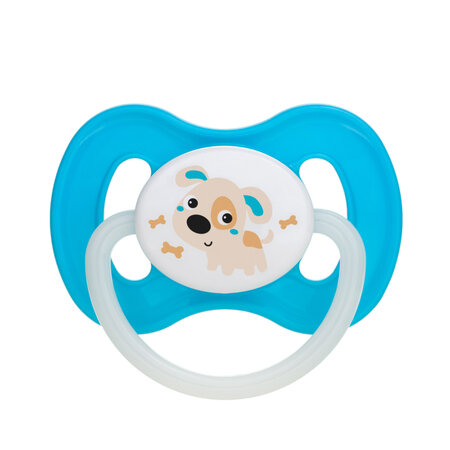 Symbol: 22/596Soother ANIMALS made of high quality, odorless silicone. Equipped with cherry nipple. Provides free breathing and swallowing of saliva. Thanks to the holes in the shield, the soother does not irritate baby's sensitive mouth. BPA Free. Available in several colors. Designed for children aged 6-18 months.
