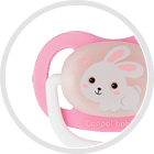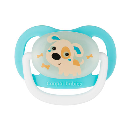 Symbol: 23/273BUNNY&COMPANY soother will relax and calm your baby. Ortodontic shaped nipple is made of the highest quality, safe and gentle silicone, odorless and tasteless, which makes it easier for the baby to accept the soother. Ventilated holes in the shield ensure free breathing and swallowing of saliva. Specially designed shape of the shield minimizes the imprinting of the soother on the baby's delicate face, preventing irritation. Convenient soother holder allows you to attach the soother holder and makes it easier to give it to the baby. Glowing in the dark shield makes it easy to find the soother at night. Canpol babies ortodontic soother BUNNY&COMPANY is durable and resistant to deformation. BPA-free. Canpol babies ortodontic silicone soother BUNNY&COMPANY is safe and easy to keep clean - it can be disinfected in boiling water and in the sterilizer. Symmetrical soother adapts to the child's mouth well regardless of the way it is placed, and its shape is considered the most physiological and supports the maintenance of the natural sucking rhythm and proper speech development. Canpol babies ortodontic silicone soother BUNNY&COMPANY is available in several unique designs and different sizes - it grows with the baby.