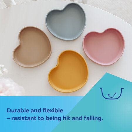 Silicone suction plate HEART is perfect for your baby's first meals at the beginning of its adventure with expanding the diet, also with the BLW method. The plate has a non-slip suction cup on the bottom, thanks to which it is stable and sticks well to the table, which makes it difficult to throw it off. The plate has high, rounded edges that make it easier for the child to scoop the meal on a fork or spoon. It was made of 100% high-quality food-grade silicone, making it safe for the child. Does not contain BPA, PVC, phthalates or other harmful substances. It can be washed in the dishwasher and heated in the microwave. Canpol babies silicone plate with a suction cup in the shape of a heart is a great idea to beautifully serve and make your baby's meal even more enjoyable.