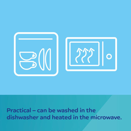 Practical – can be washed in the dishwasher and heated in the microwave.