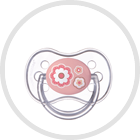 Keep soothers in a clean and dry container. Replace the soother with a matte or cracked teat before the baby bites off a piece of it and chokes. Check the product before each use. Pull the nipple in all directions. Throw away at the first signs of damage or weakness. If your child already has teeth and still uses a soother, regularly check the teat if it is not bitten. To ensure child’s comfort and safety, it is recommended to replace the soother every 1-2 months. If it happens that your child puts the whole soother in the mouth, DO NOT PANIC. The soother was designed in such a way that it cannot be swallowed by a child. As soon as you notice that your baby has put the entire soother in his mouth, remove it as gently as possible.
