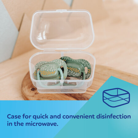 Symbol: 34/930_yelSoother is an inseparable friend of every baby, which will bring comfort and calm the need to suck. Symmetrical soother adapts well to the baby's mouth regardless of how it is placed, and its shape is considered the most physiological and supports the maintenance of the natural sucking rhythm and proper speech development. The nipple is made of the highest quality, safe and delicate silicone. It is odorless and tasteless, which makes it easier for the baby to accept the soother. Specially profiled shield allows the baby to breathe freely through the nose and minimizes the imprinting of the sootehr on the baby's delicate face. Additional vented openings allow the skin to breathe and prevent irritation. Convenient handle of the soother makes it easier to give it to the child and allows to attach a soother chain or ribbon that will protect the soother from being lost or falling to the ground and getting dirty. Canpol babies symmetrical silicone soother 0-6m Mountains is durable and resistant to deformation. The soother is safe and easy to keep clean, thanks to the modern case that can be used both for storage and for quick and convenient sterilization in a microwave oven. Just a little bit of water and 2 minutes are enough to keep the soothers hygienically clean. No BPA or other harmful substances were used in production. Canpol babies symmetrical silicone soother is recommended for children aged 0-6 months. Canpol babies symmetrical soother 0-6m Mountains is available in two colors and different sizes – it grows with your baby.