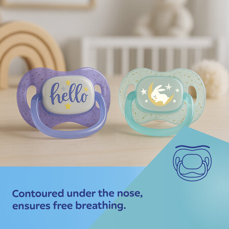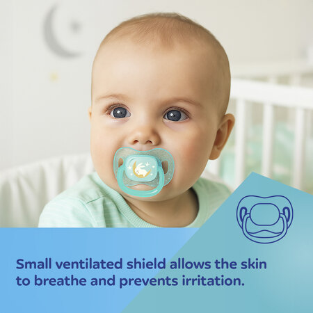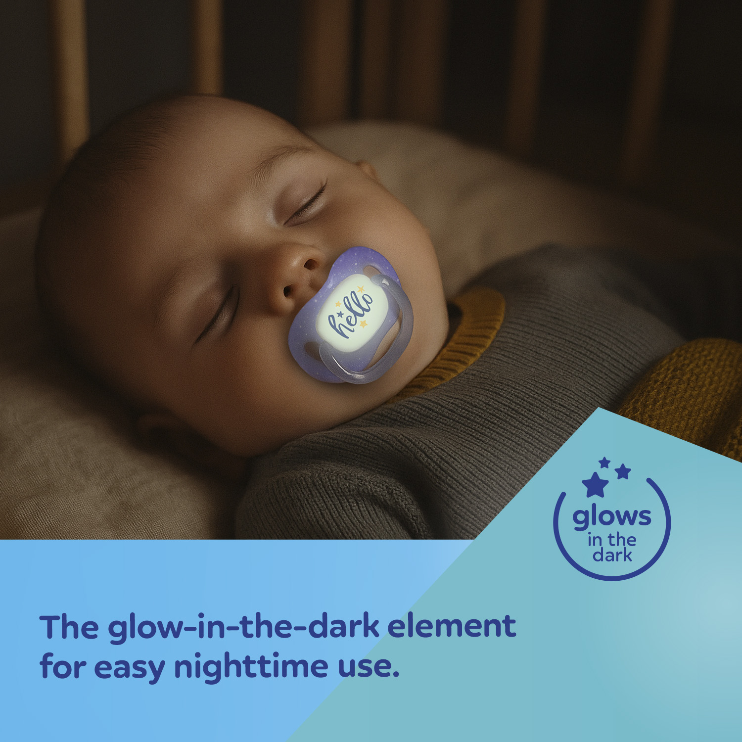 The NightGlow soother glows in the dark, making it easy to find at night without waking your baby – designed for peaceful sleep and everyday comfort.
