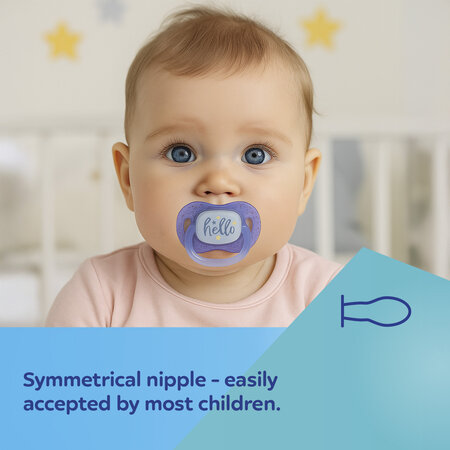 The symmetrical teat fits naturally in the baby’s mouth regardless of its position, and its shape is considered the most physiological — supporting the natural sucking rhythm and proper speech development.