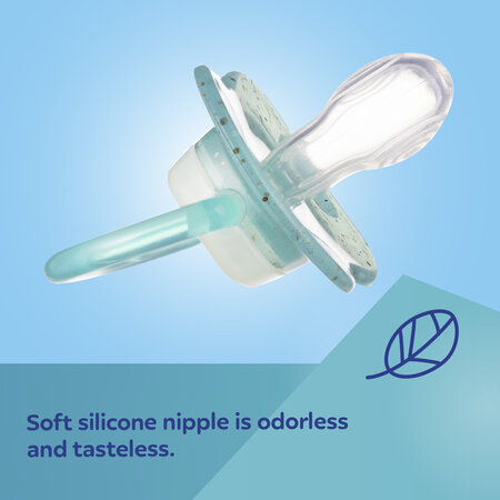 The nipple is made of the highest quality, soft silicone – odorless and tasteless, making it easier for babies to accept. The specially contoured shield allows your baby to breathe freely through the nose and swallow saliva comfortably. Its ergonomic design minimizes the risk of irritation and prevents marks on the baby’s delicate skin.