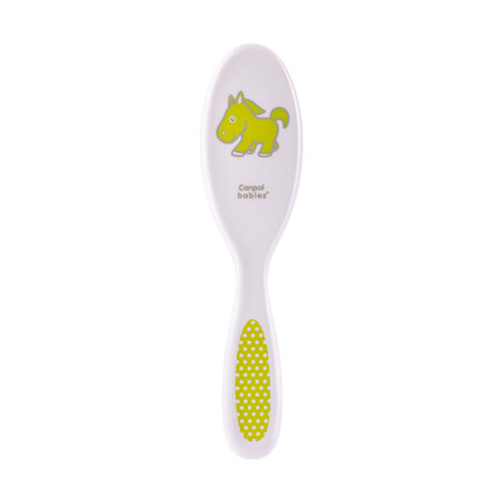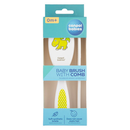 Symbol: 2/417_greHairbrush with a comb for daily care of your baby's hair. The comb has rounded teeth that do not irritate baby's sensitive skin. The brush with soft, artificial bristles gently massages the toddler's head without electrifying his hair.