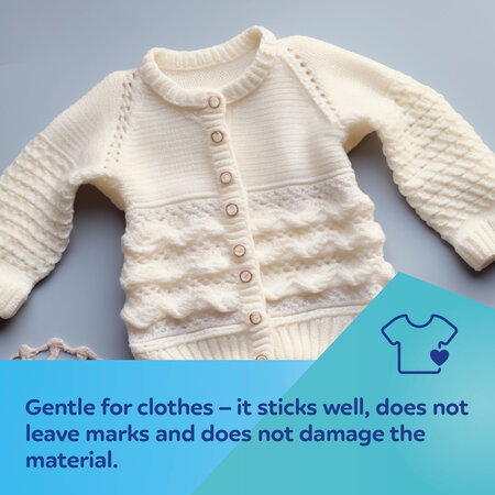 Gentle to clothes – holds well, leaves no marks and does not damage the material.